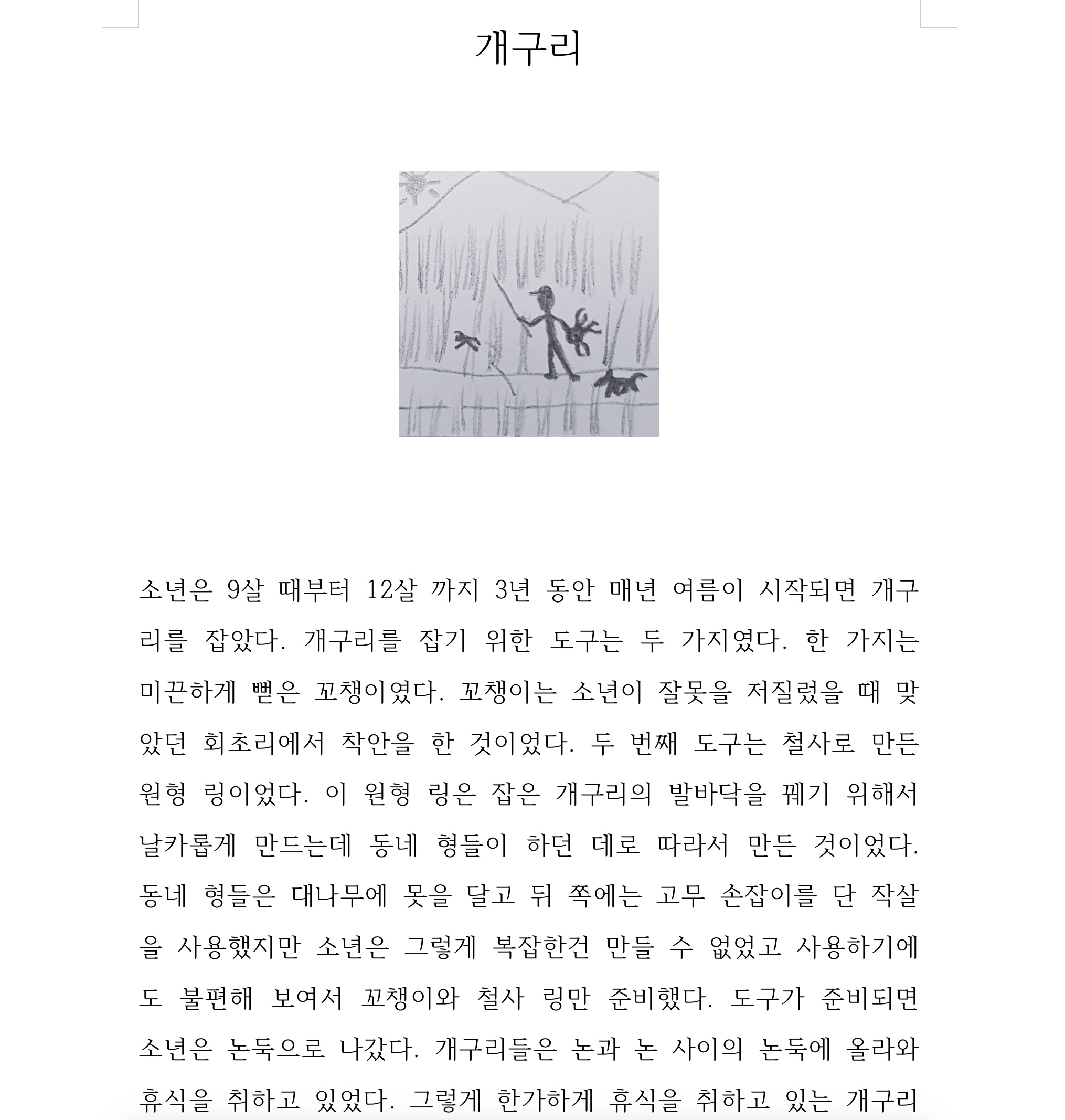 3. 내용 : 시골 소년의 독특한 경험을 담은 이야기